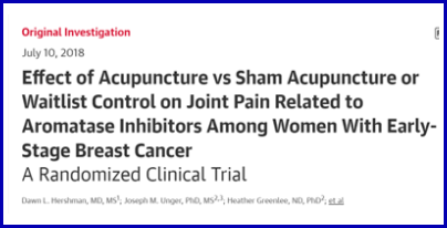 • 침 치료가 유방암 환자의 호르몬제 투여로 인한 관절통 개선에 도움을 줄 수 있다